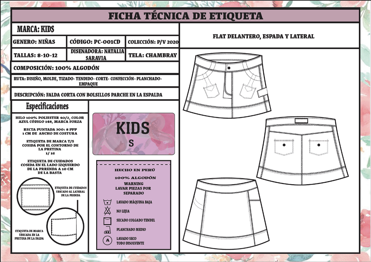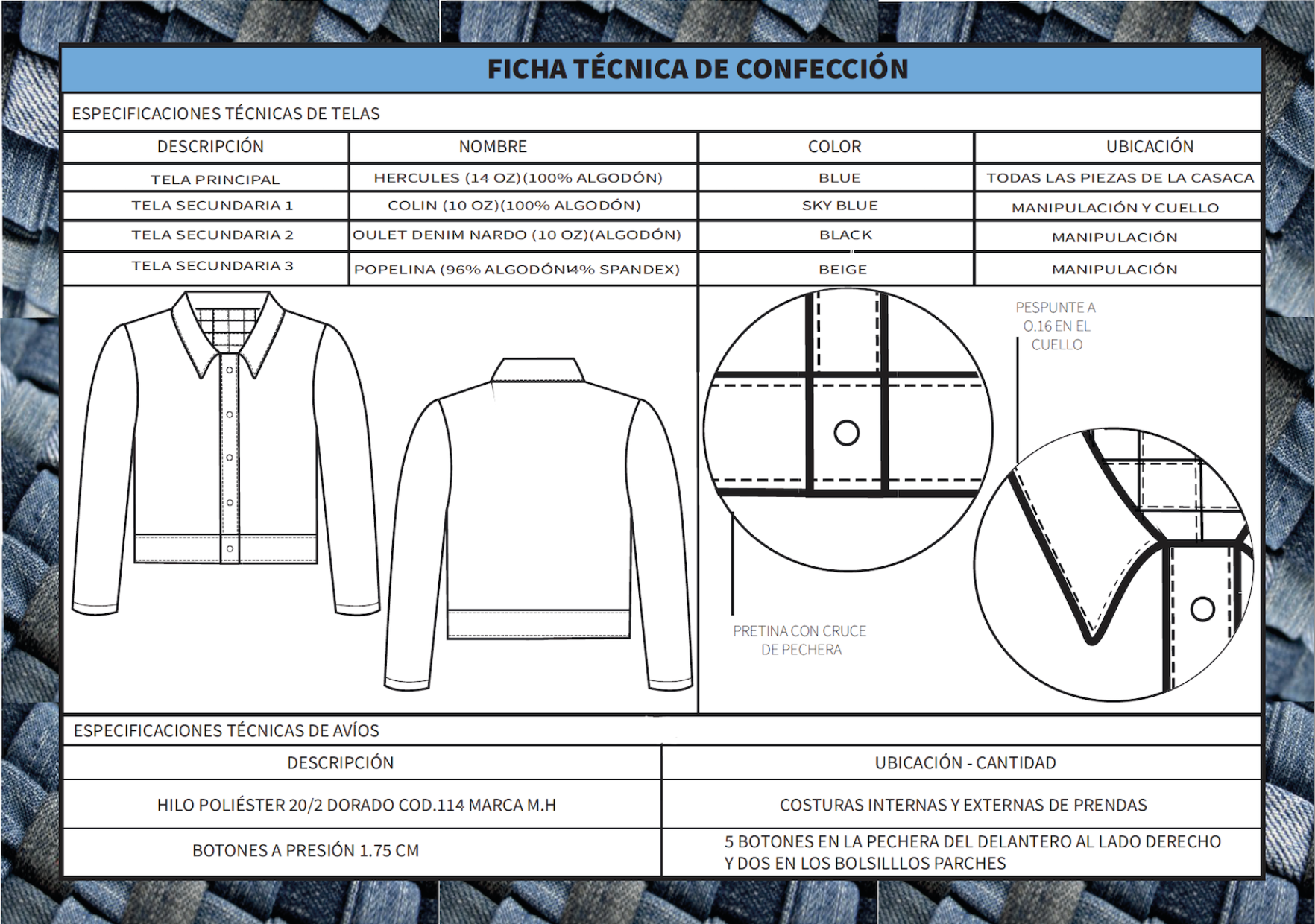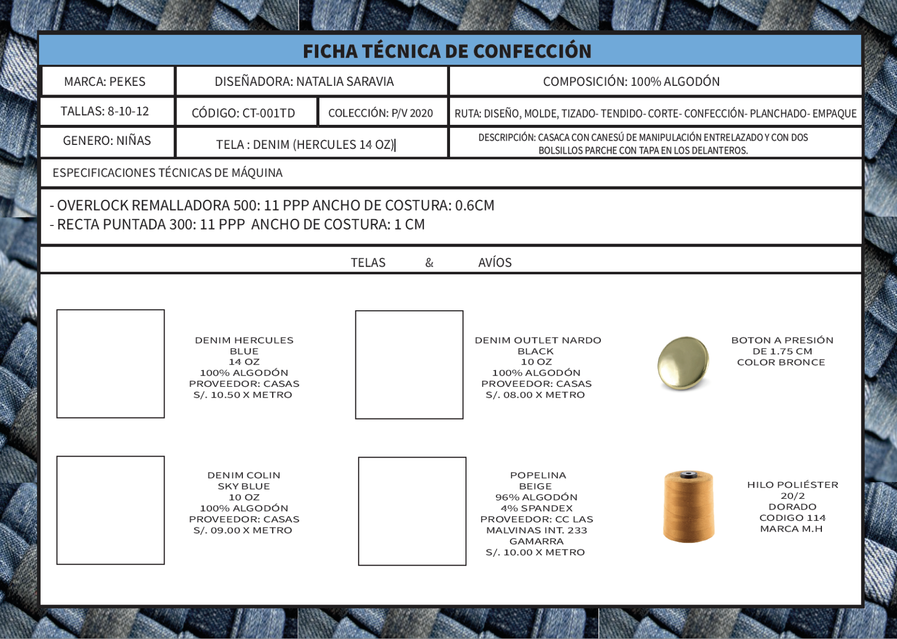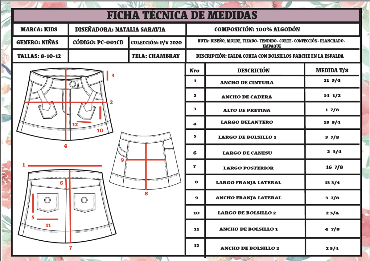Desarrollo de fichas tecnicas para solo una prenda