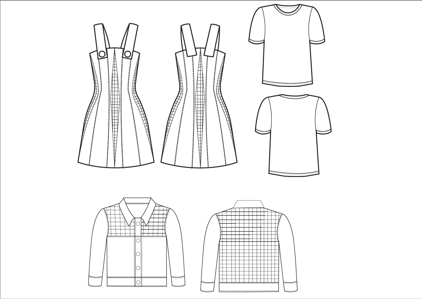 Variaciones de ficha técnica de diseño y de producto para una prenda